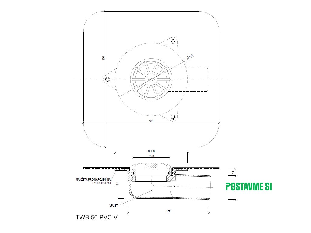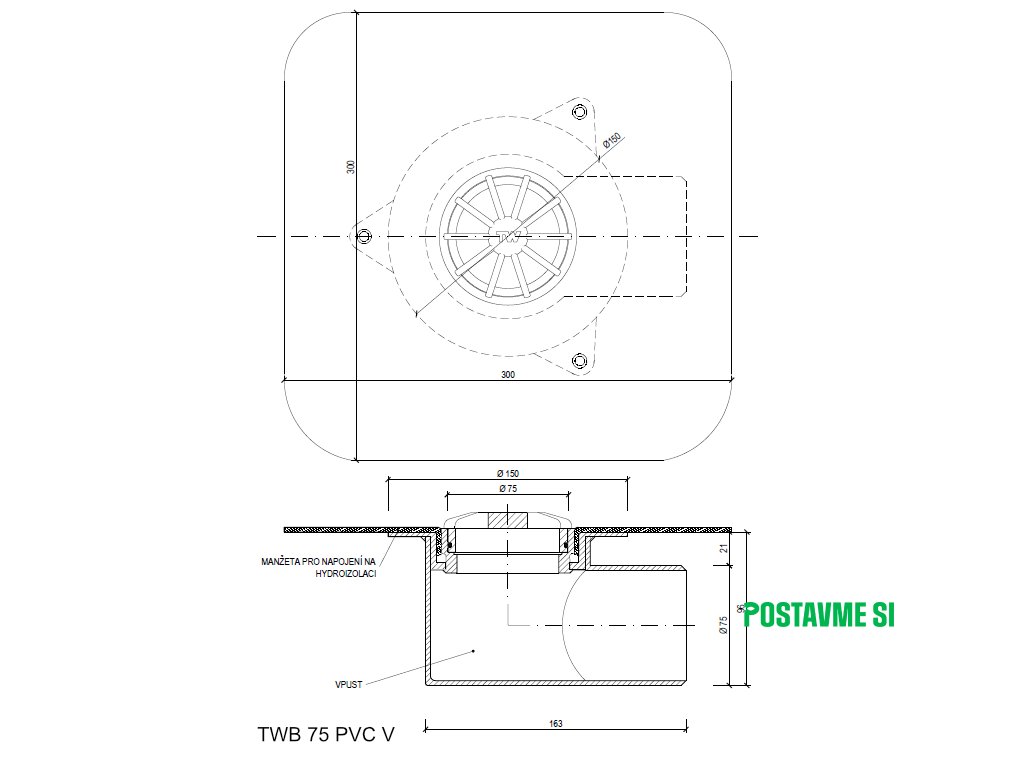 - Plochý pochôdzny ochranný kôš TWB PLK je súčasťou balkónového vpustu