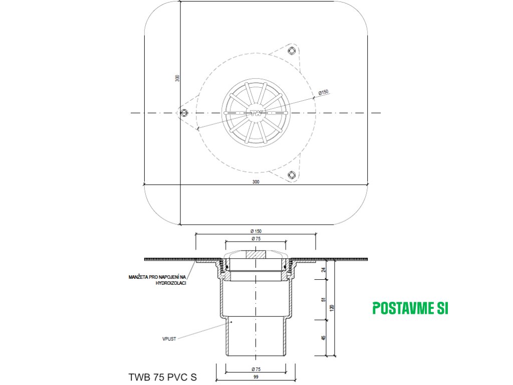 - Plochý pochôdzny ochranný kôš TWB PLK je súčasťou balkónového vpustu