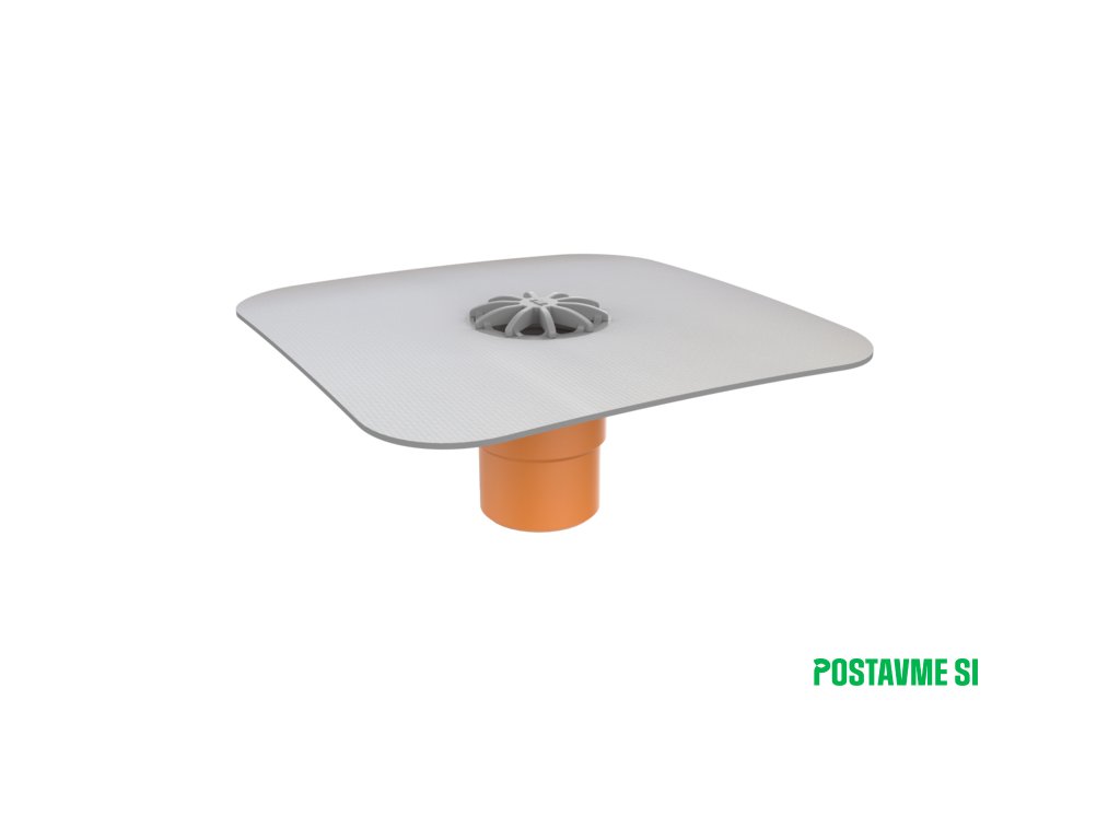 Kombinácia balkónového vpustu s integrovanou manžetou a plochým pochôdznym ochranným košom dodávaným štandardne k balkónovým vpustom.