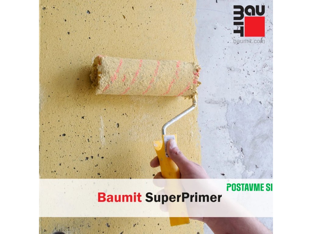 Baumit SuperPrimer nanášať neriedený celoplošne valčekom alebo štetcom a to rovnomerne bez prerušenia v tenkej vrstve. Baumit SuperPrimer je možné nanášať aj strojovo vhodným striekacím zariadením.
