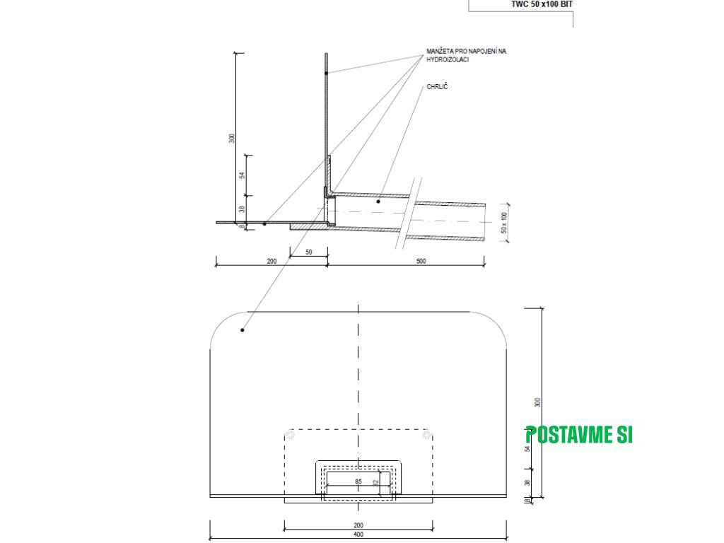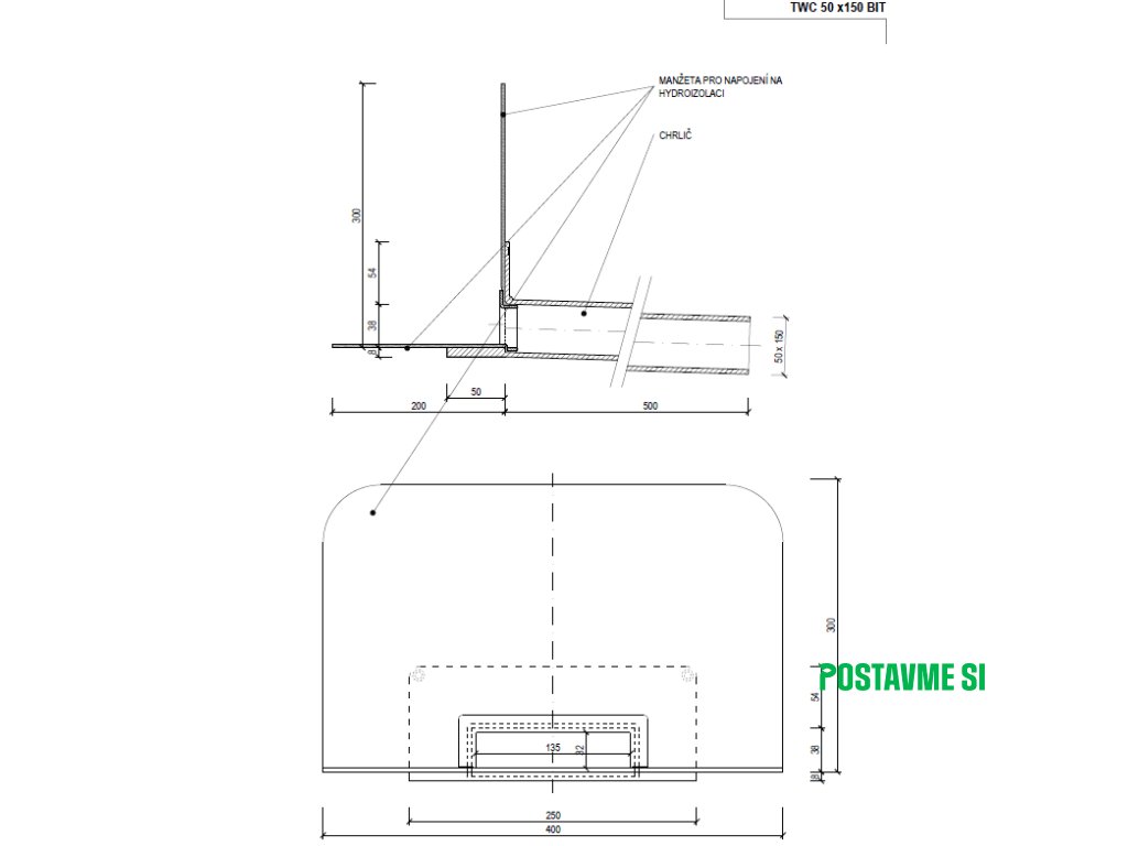- Integrovaná bitúmenová manžeta (modifikovaný asfaltový pás)