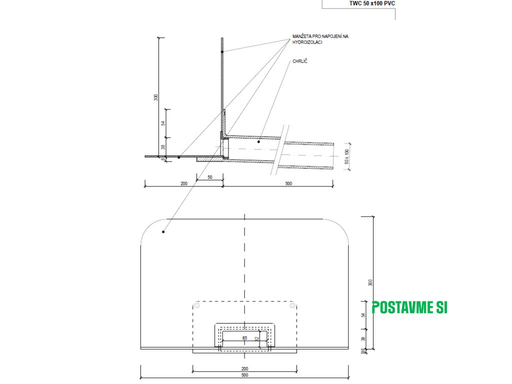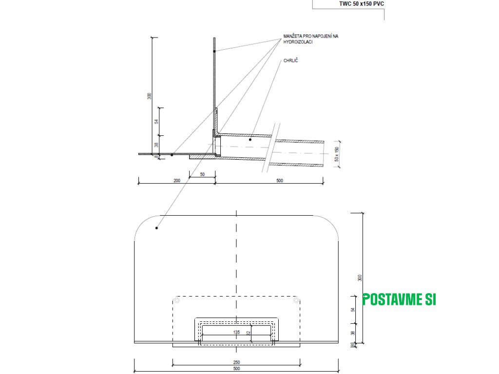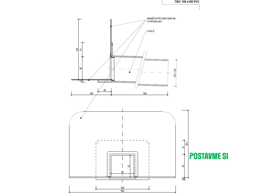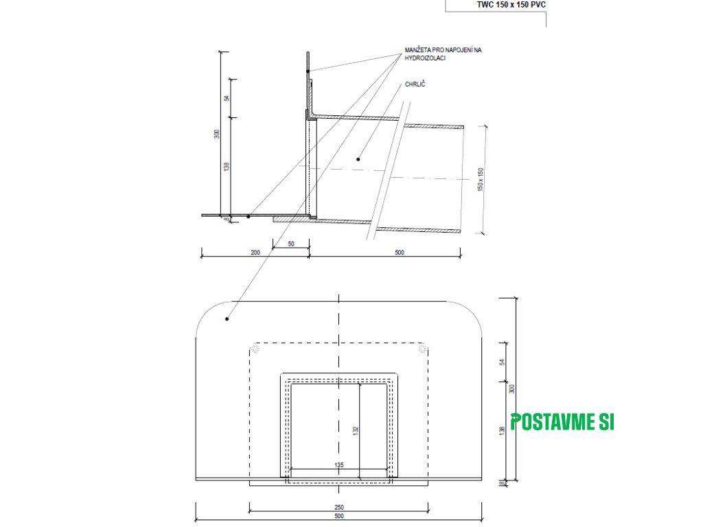- integrovaná PVC manžeta (hydroizolačná fólia na báze PVC)