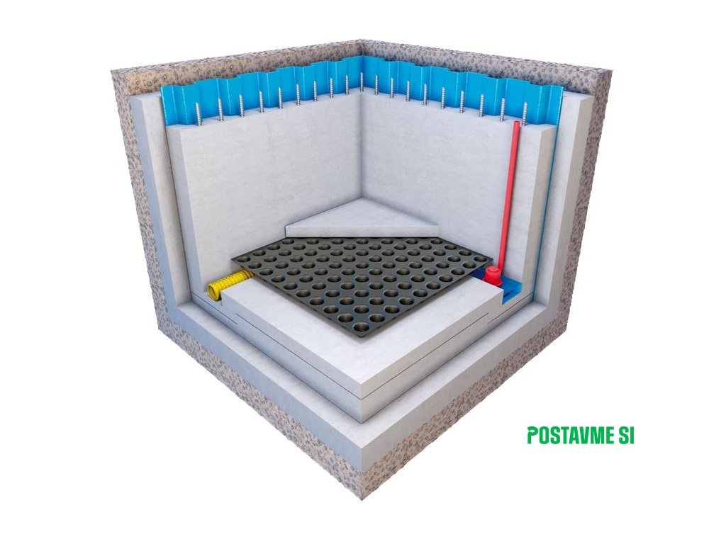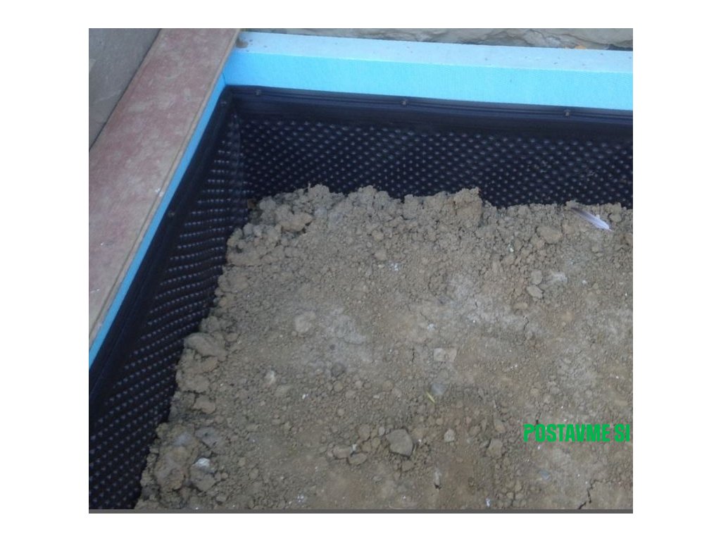 Ak sa používa na terase a balkóne, fólia zabraňuje vnikaniu vlhkosti do betónovej vrstvy, vyrovnáva hydrostatický tlak a odvádza presakovanie podlahy a štrku do obvodového odtoku pätky. Pri použití ako izolácia v stropoch poskytuje výrobok ochranu pred vlhkosťou a umožňuje nalievanie betónovej zmesi rovnomerne.
