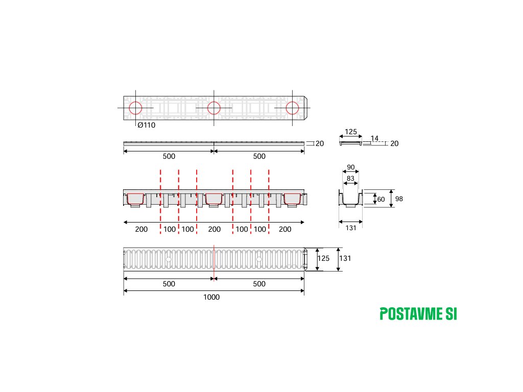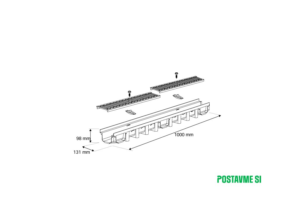 Odvodňovací žľab s liatinovým roštom 131x98x1000mm C250