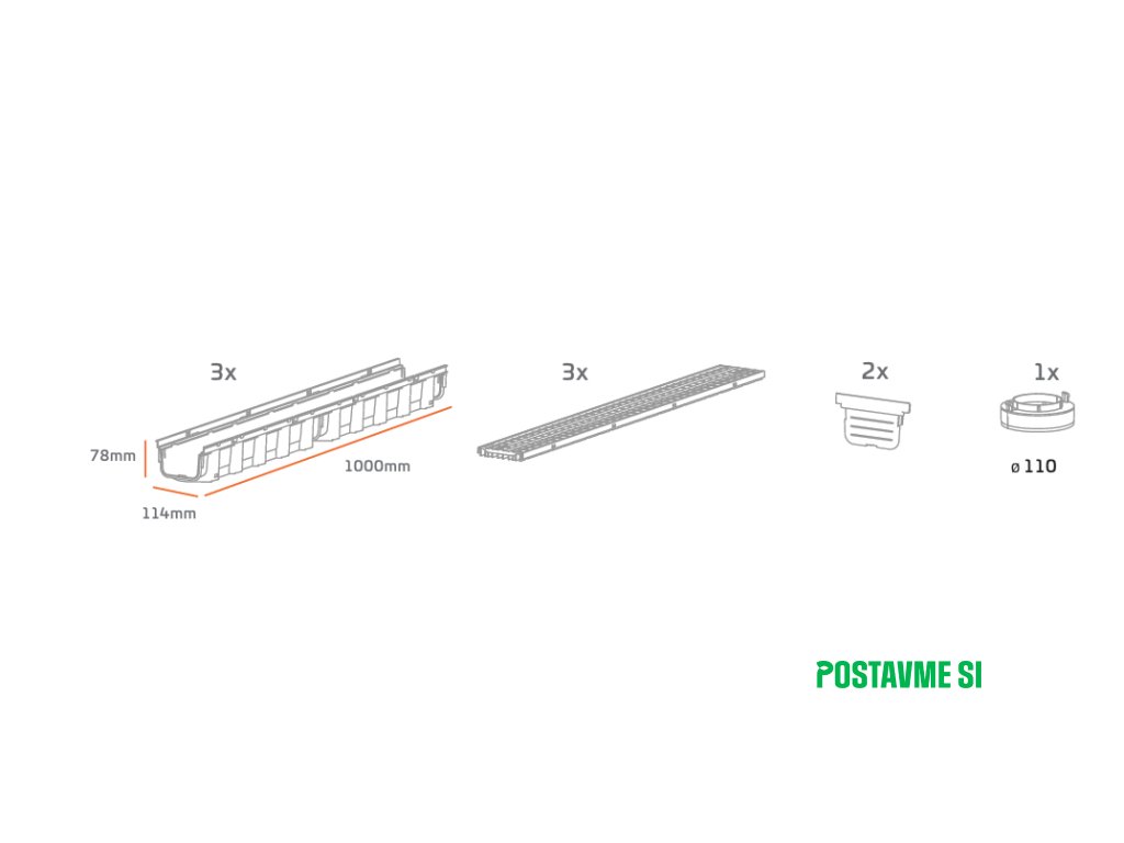 Odvodňovací žľab s PP roštom 78 mm A15 - SET