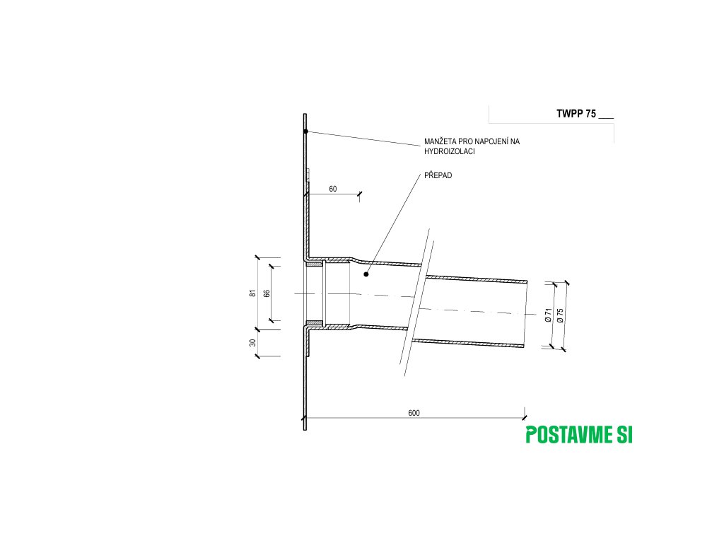 Poistný prepad TWPP 75 PVC - DN 70
