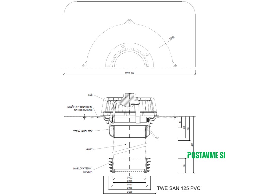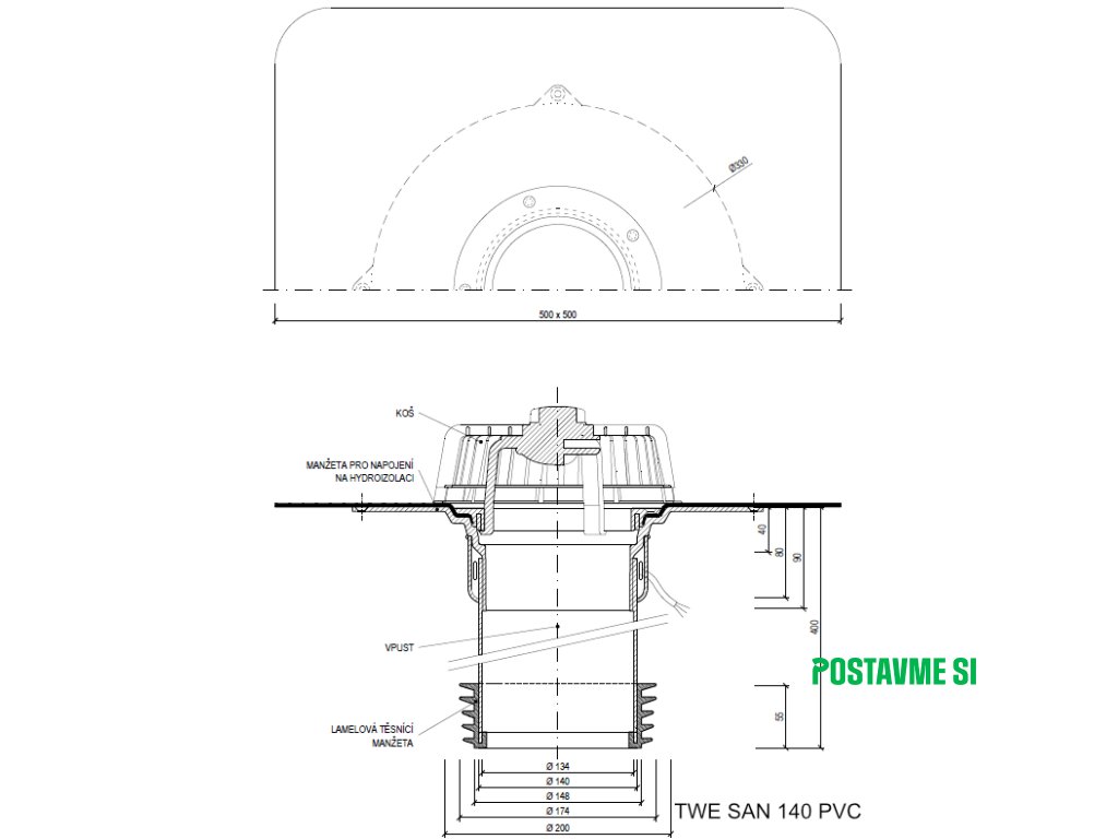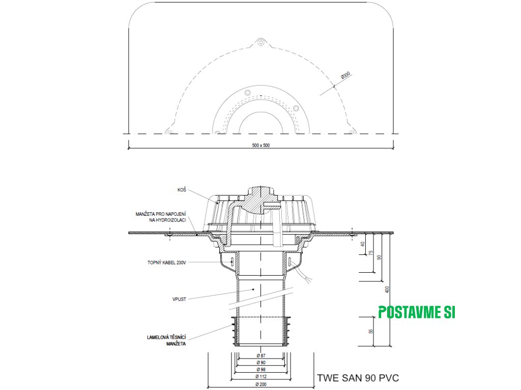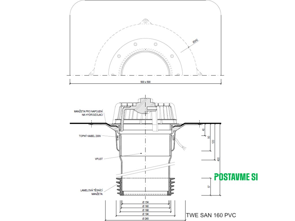 Vpust je možné dodať na objednávku za príplatok aj s manžetou EPDM, TPO, PE, STE.