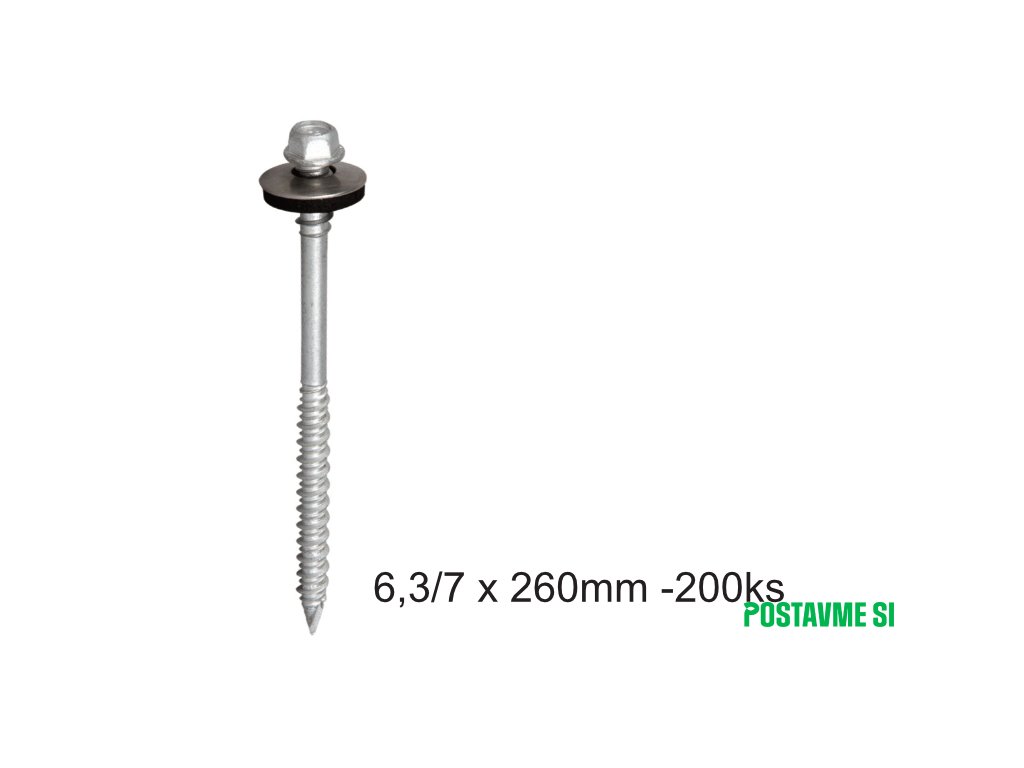 Skrutka je vybavená závitom do betónu a je vyrobená z kalenej ocele s povrchovou úpravou Ruspert, ktorá zabezpečuje vysokú odolnosť voči korózii. Skrutka má šesťhrannú hlavu M8, je vybavená podložkou z nehrdzavejúcej ocele s tesnením EPDM.