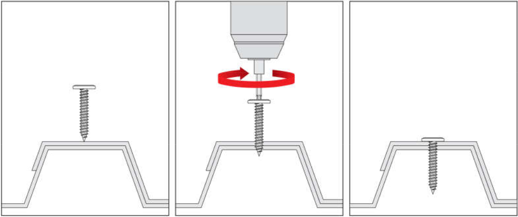 - Zvoľte dĺžku skrutky – podľa hrúbky spojovaných plechov (celková hrúbka max. 2 mm).