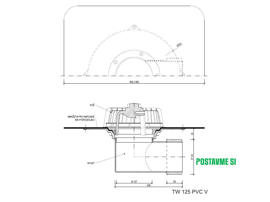Strešný vpust bočný TW PVC V