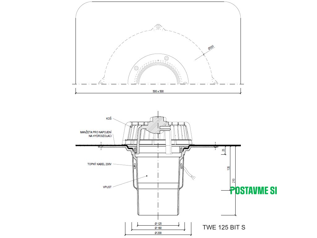 Strešný vpust priamy s ohrevom TWE BIT S