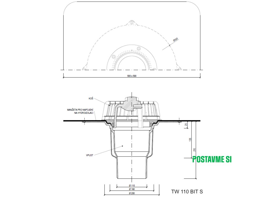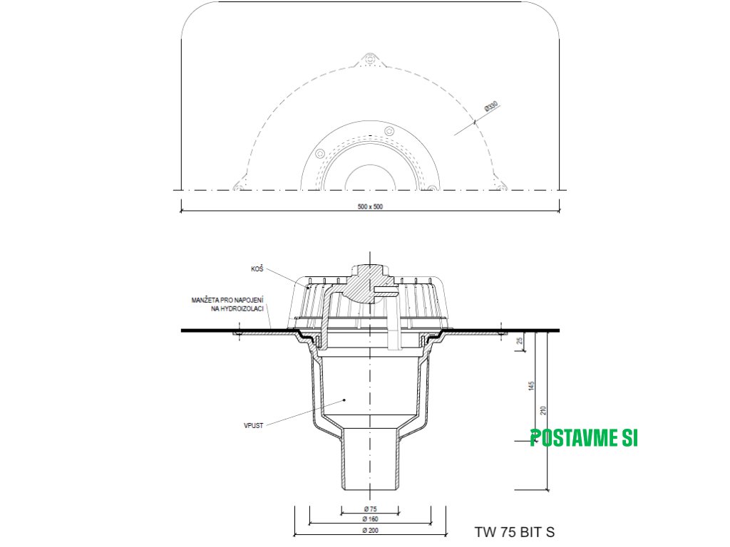- Dvojstenné prevedenie vpustu zabraňuje vzniku kondenzátu, je tepelne izolovaný (dvojstenný)