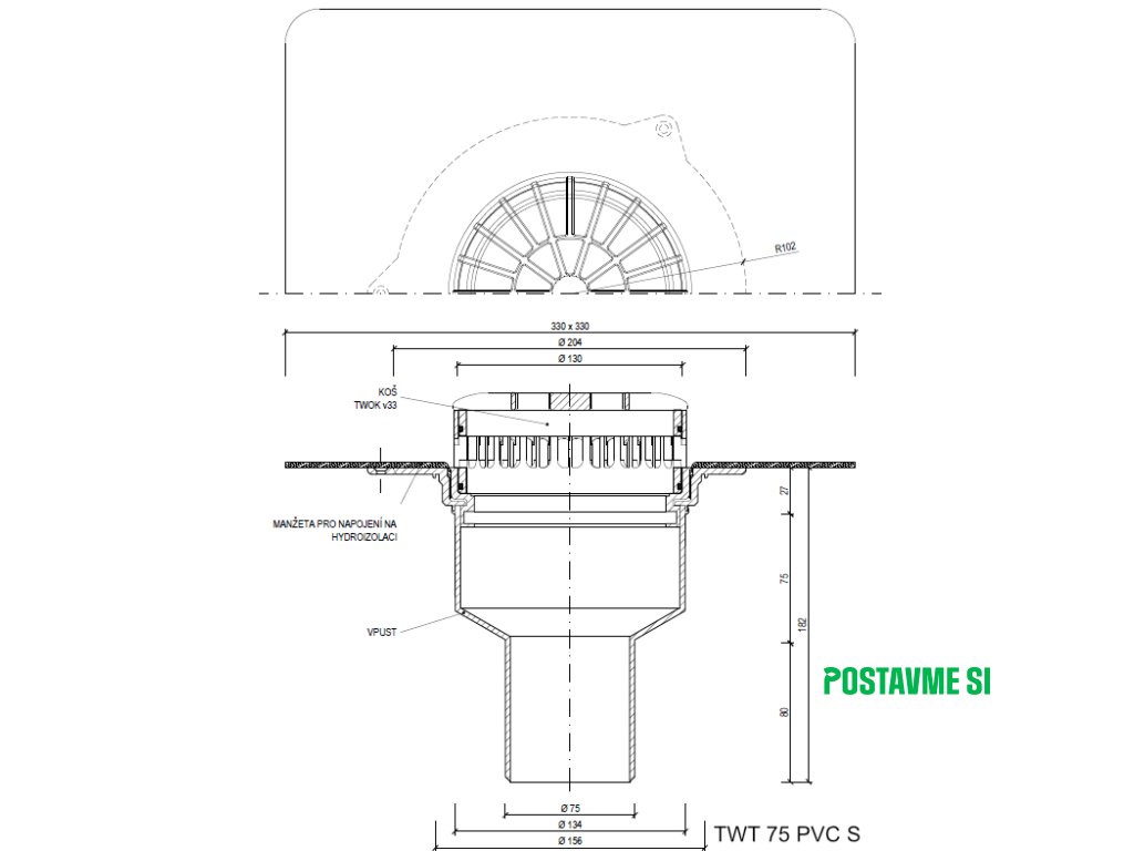 Terasový vpust priamy TWT PVC S