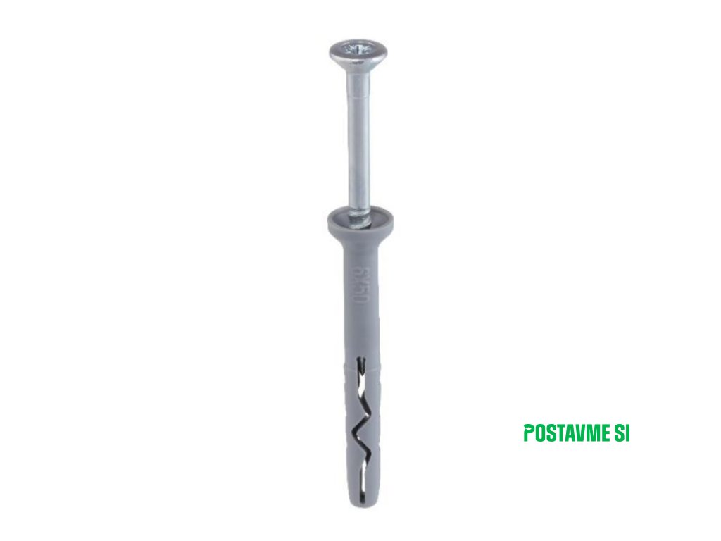 - Zatlčte skrutku kladivom, až kým hlava nezapadne do puzdra a upevňovaný prvok pevne nedrží.
