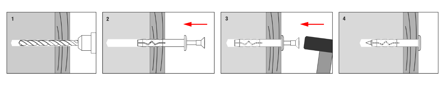 - Zatlčte skrutku kladivom, až kým hlava nezapadne do puzdra a upevňovaný prvok pevne nedrží.