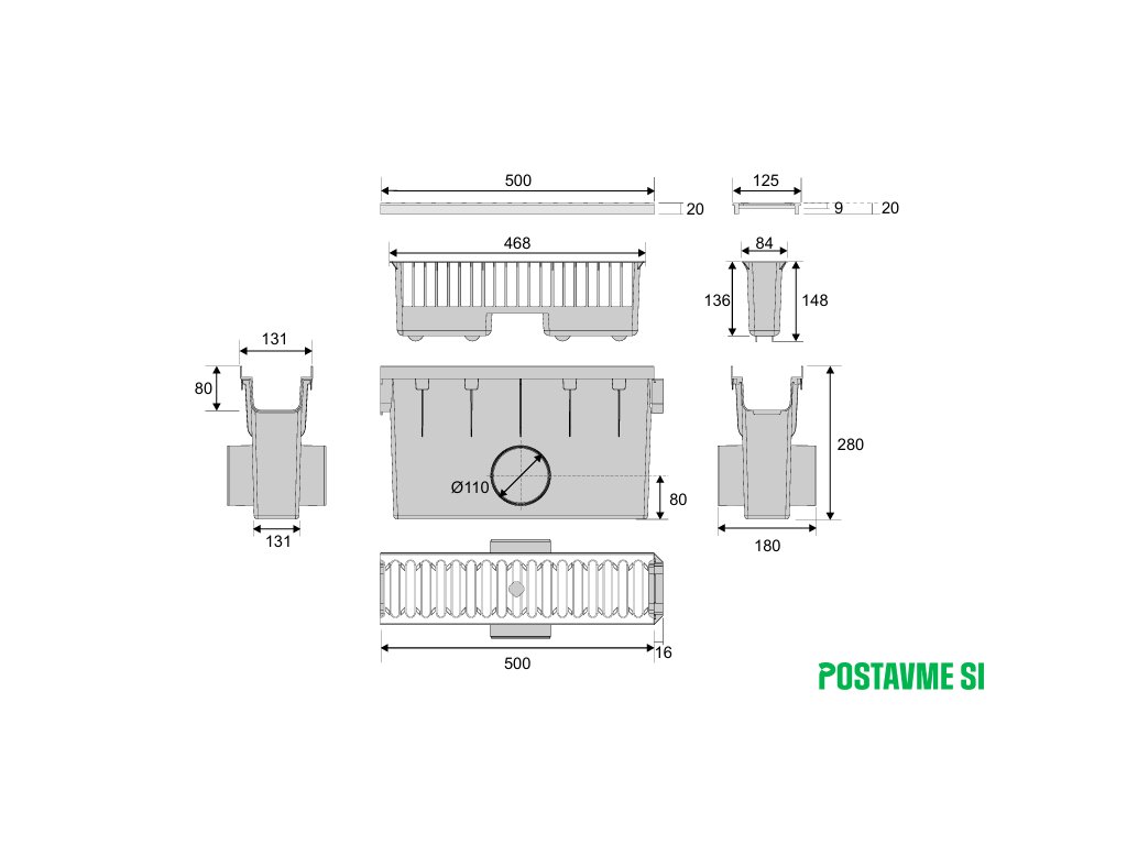 K zbernej šachte je možné pripojiť odvodňovacie žľaby a tiež odtokovú rúru Ø110mm. Vďaka PP materiálu je šachta ľahká, ale odolná a ľahko sa inštaluje. Je ideálnym riešením pre každého, kto chce efektívny a estetický odvodňovací systém pre svoj priestor.